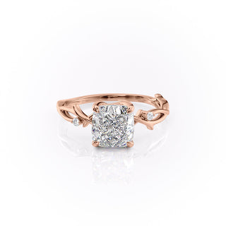 2.54 CT Cushion Cut Twig Style Pave Moissanite Engagement Ring