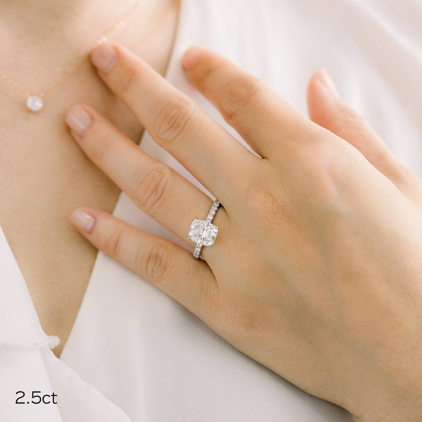 2.50CT Cushion Cut Moissanite Petite Pave Diamond Engagement Ring