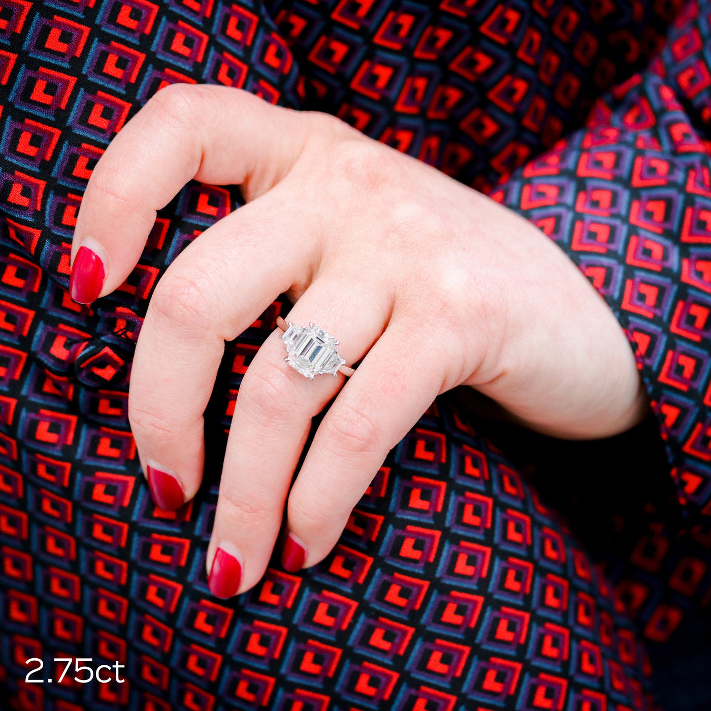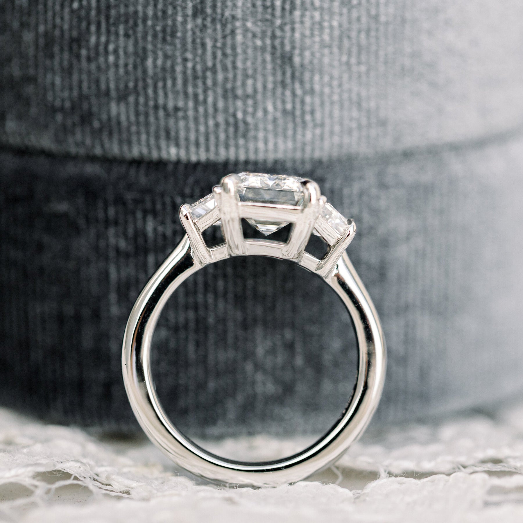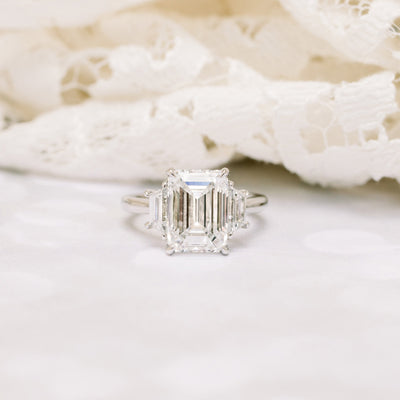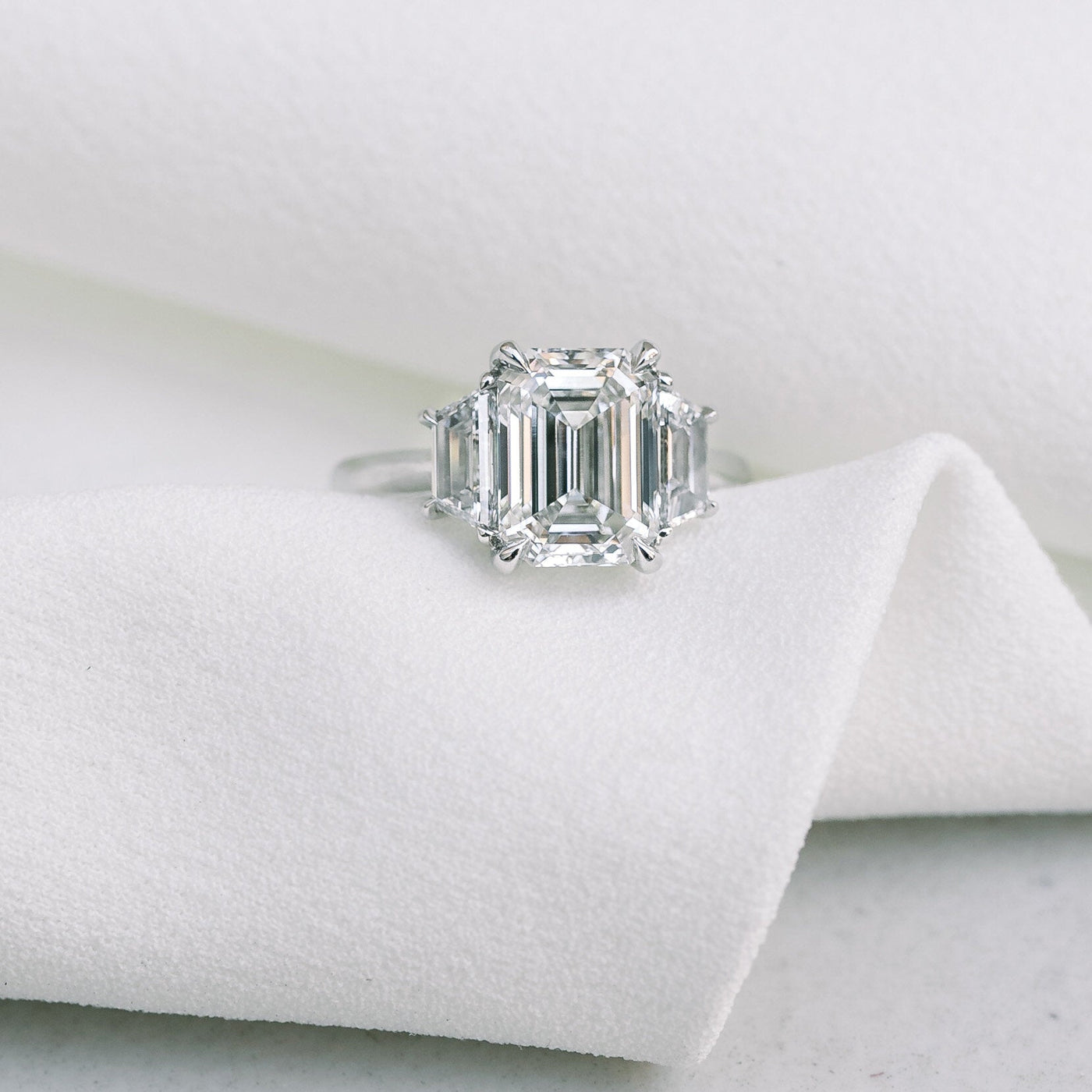 2.75CT Emerald Cut Moissanite Trapezoid Diamond Engagement Ring