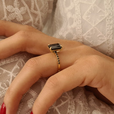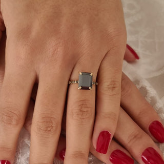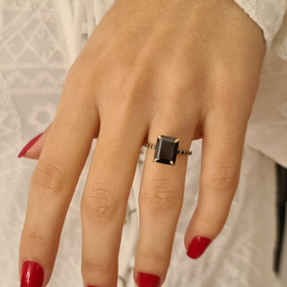 2.70CT Emerald Cut Black Diamond Moissanite Engagement Ring
