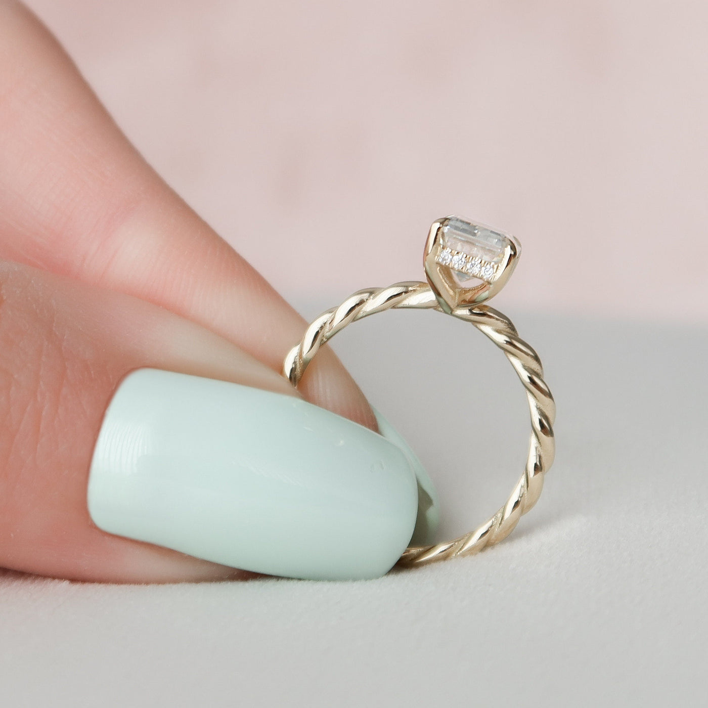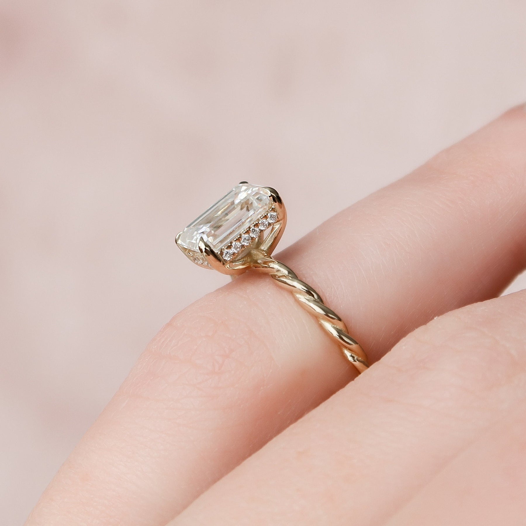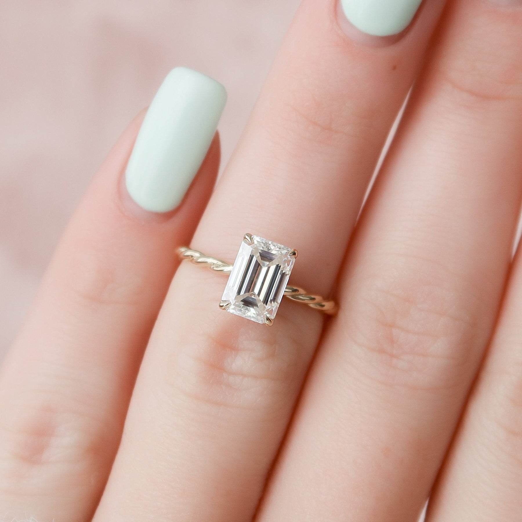 2.0CT Emerald Cut Braided Moissanite Diamond Engagement Ring