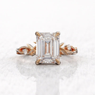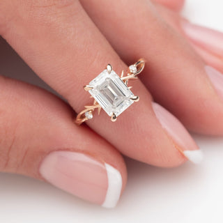 3.50ct Emerald Cut Diamond Twig Moissanite Engagement Ring
