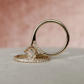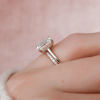 3.0CT Emerald Cut Moissanite Halo Bridal Engagement Ring Set