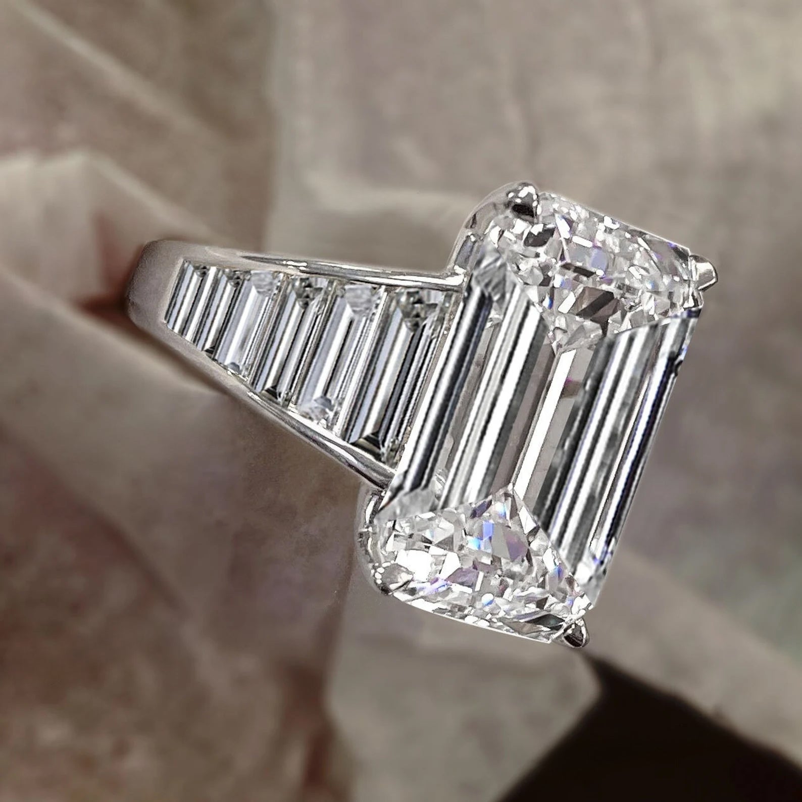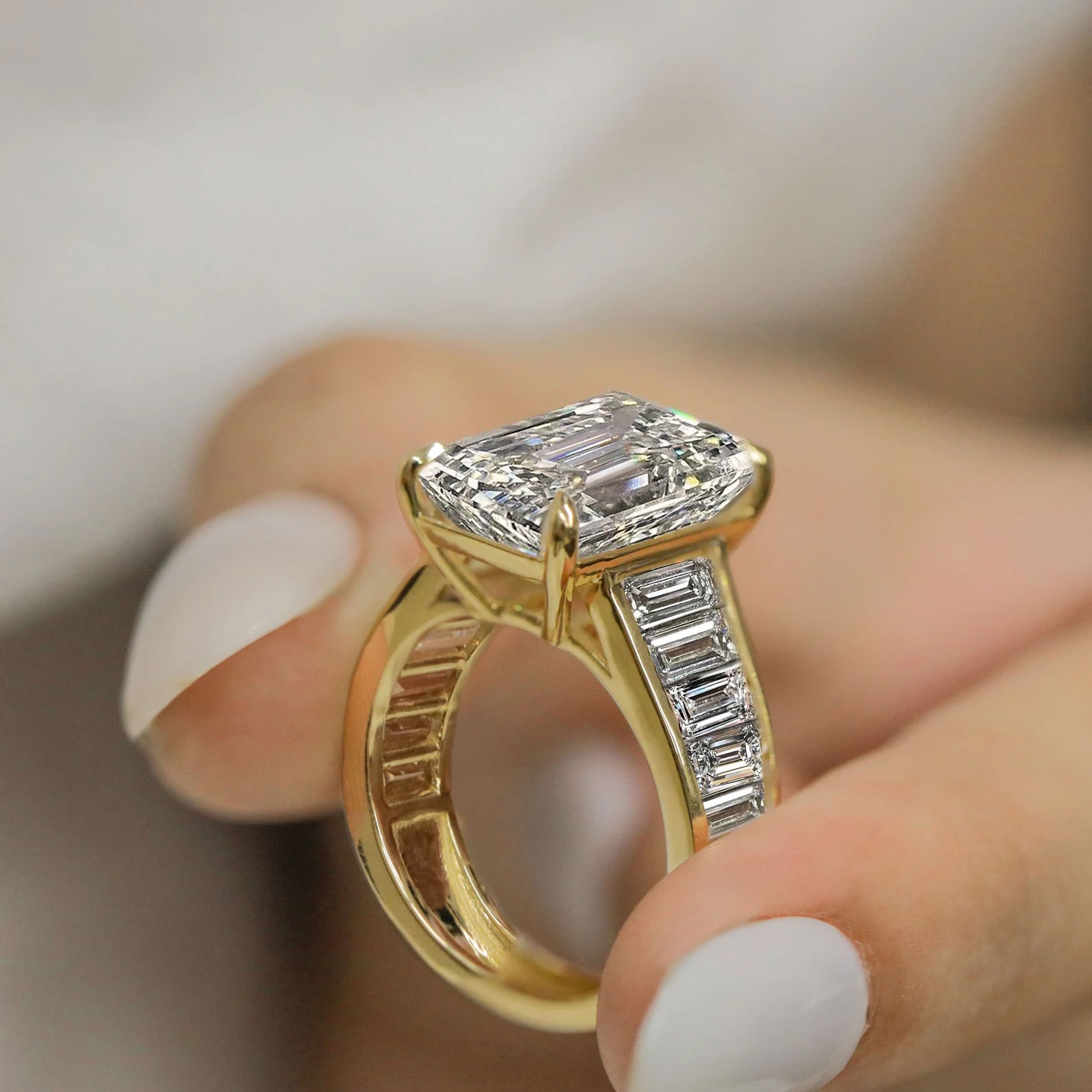 3.50CT Emerald Cut Lab-Grown Diamond Channel Set Engagement Ring
