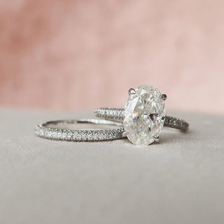 3.50CT Oval Cut Moissanite Halo Eternity Pave Bridal Engagement Ring Set