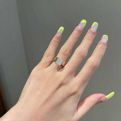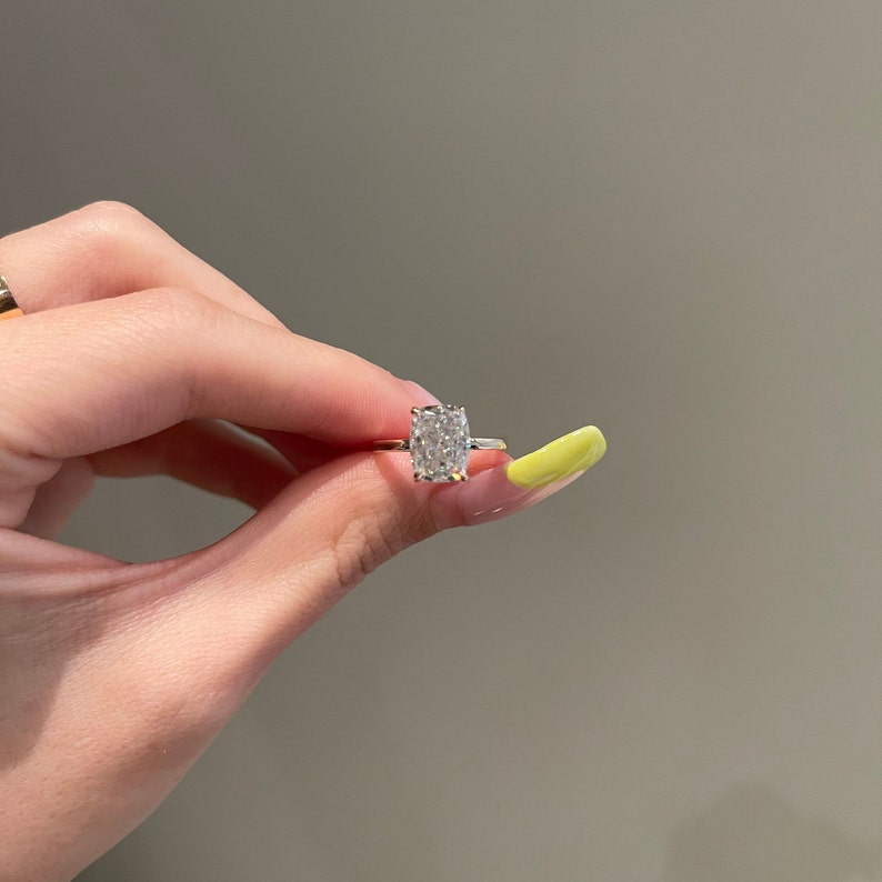 3.0CT Elongated Cushion Cut Diamond Hidden Halo Moissanite Engagement Ring