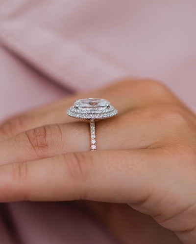 4.0ct Oval Cut Double Halo Moissanite Diamond Pave Engagement Ring For Women