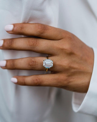 4.10 CT Emerald Three Stone Moissanite Engagement Ring