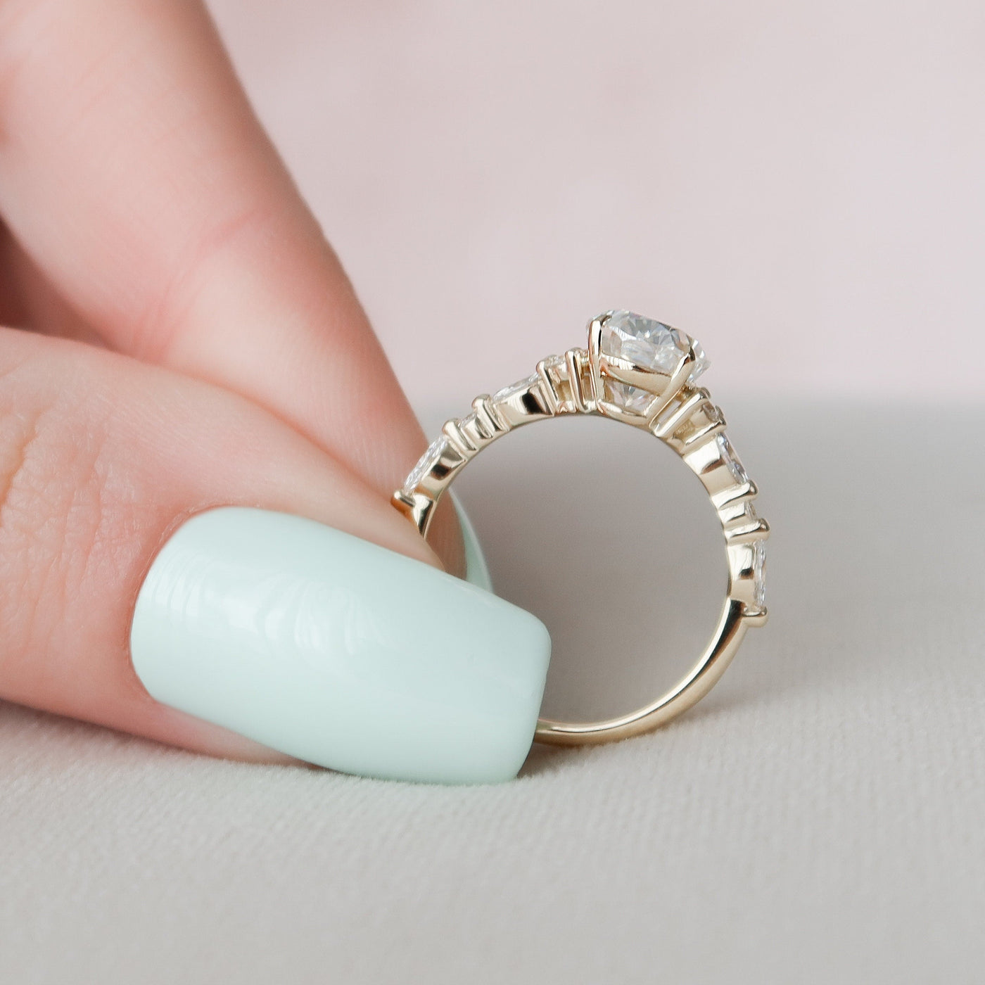 2.0CT Oval Cut Moissanite Cluster Engagement Ring