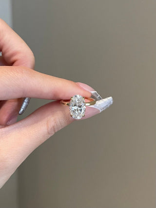 4.0CT Elongated Oval Diamond Hidden Halo Moissanite Engagement Ring