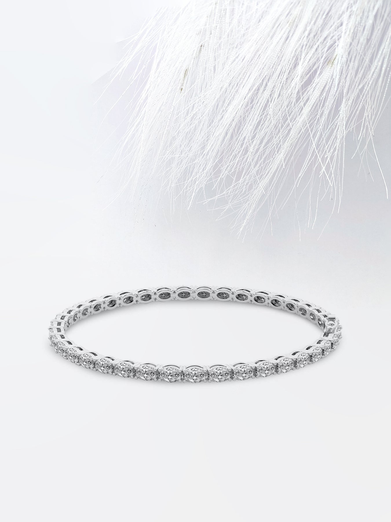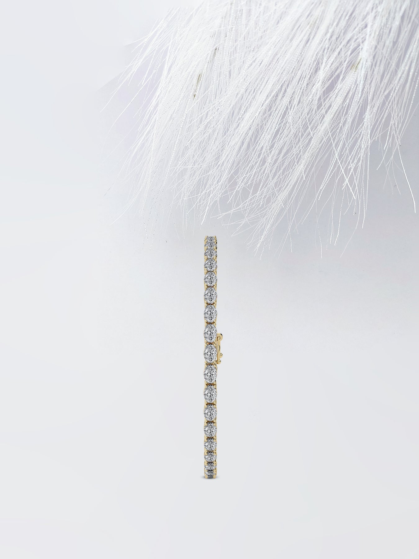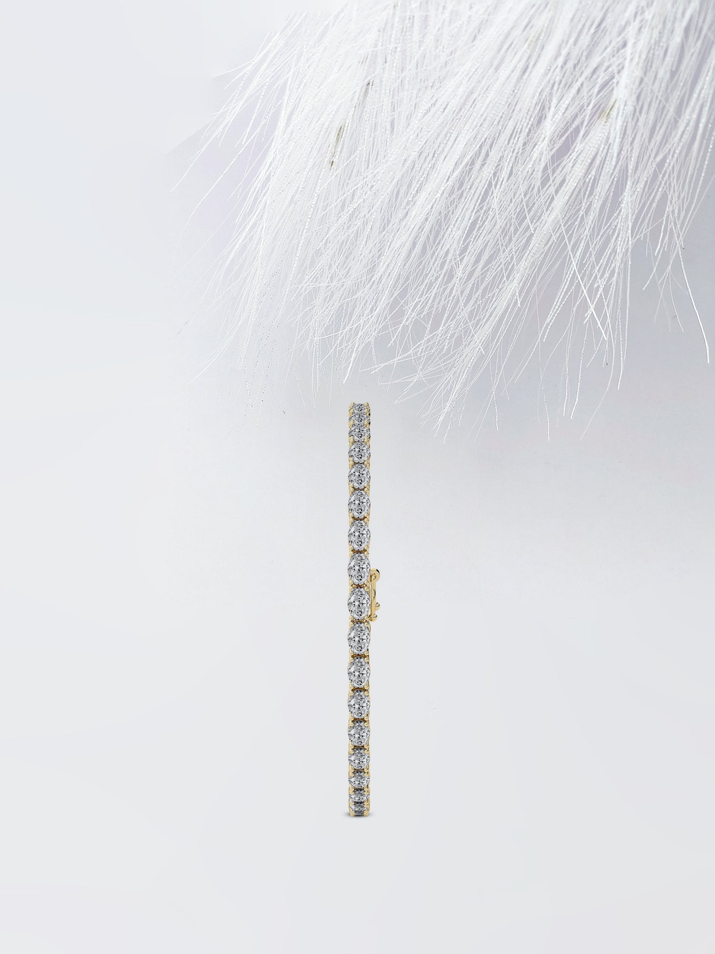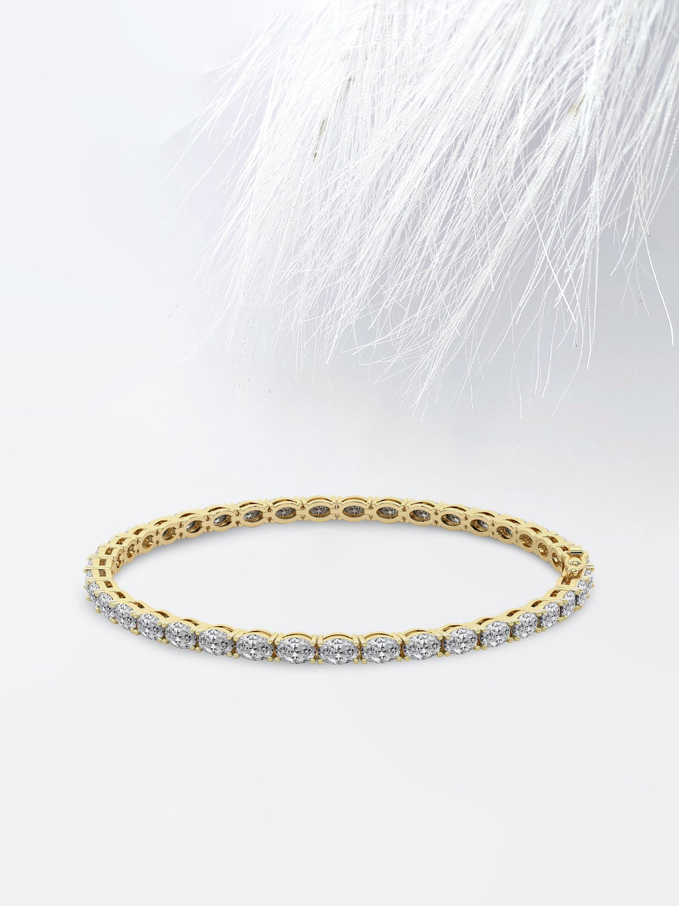 ✥ Adorn her wrist with the opulent elegance of our 5.0ct Oval Cut Tennis Moissanite Diamond Bracelet in 14k Yellow Gold. Each meticulously crafted link showcases a mesmerizing oval-cut Moissanite diamond, renowned for its brilliance and allure. Set in a classic tennis bracelet design, the radiant Moissanite stones create a seamless and luxurious display of sophistication. Whether worn as a statement piece for special occasions or as a daily indulgence, this bracelet exudes timeless beauty and glamour. Perfect for gifting to a loved one or as a cherished addition to your own jewelry collection, this exquisite bracelet is sure to be treasured for its enduring elegance and style.