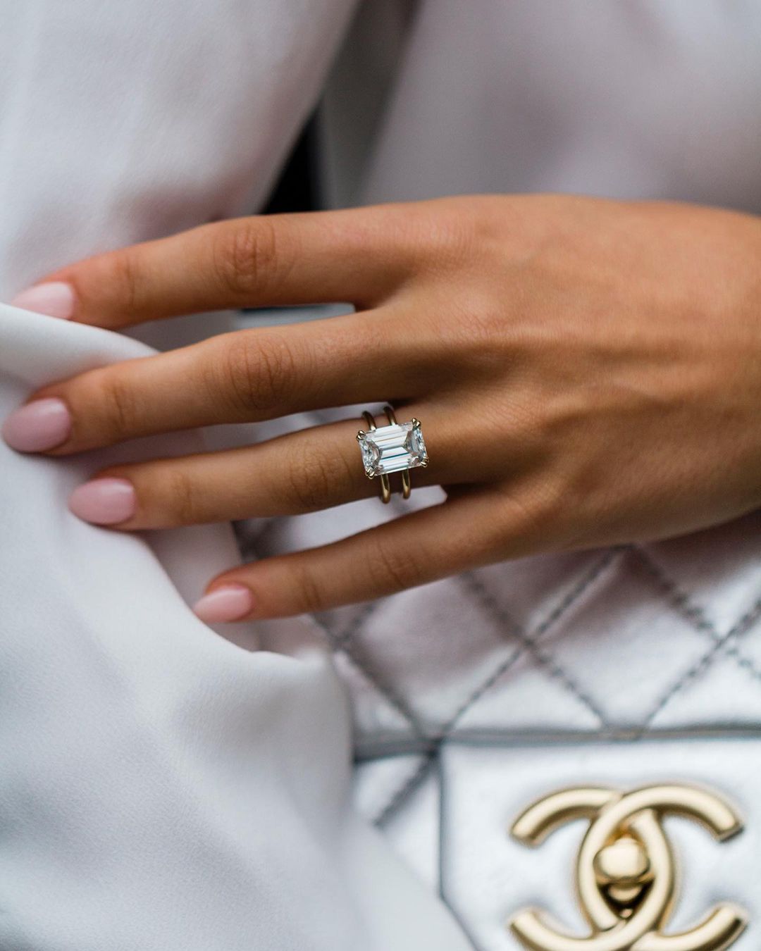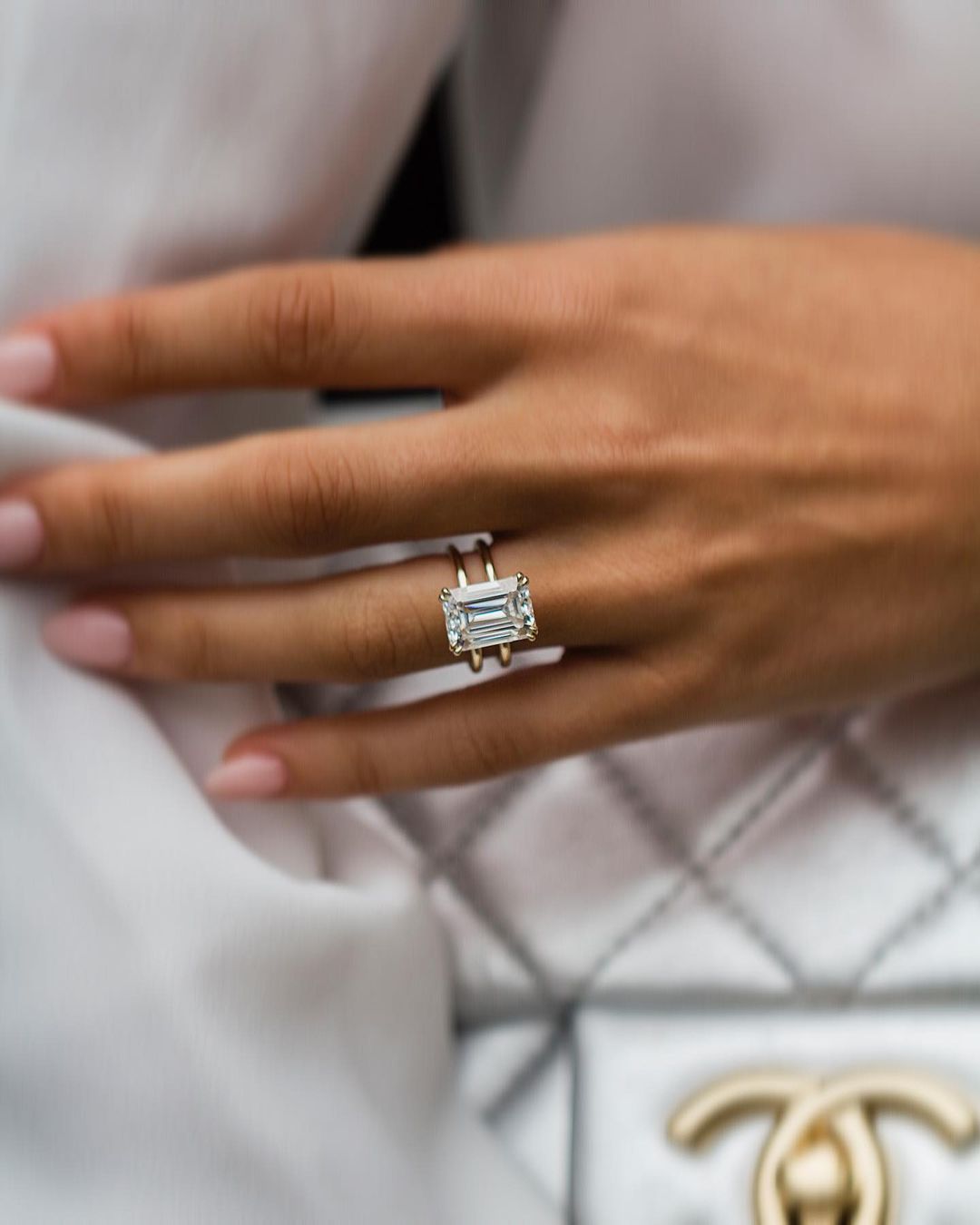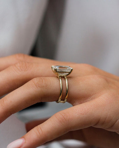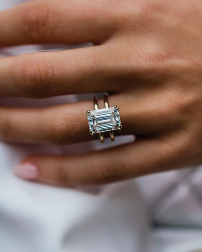 5.9 CT Emerald Solitaire Double Band Moissanite Engagement Ring