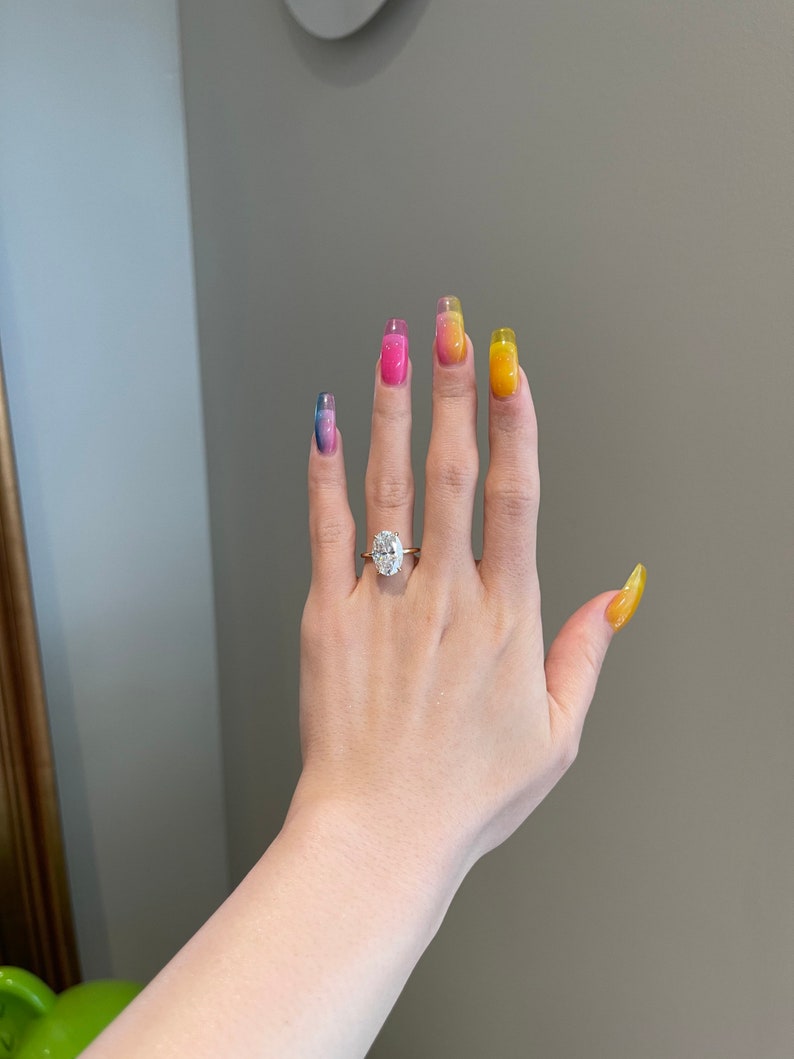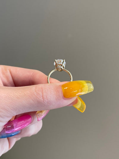 5.0CT Elongated Oval Diamond Hidden Halo Moissanite Engagement Ring