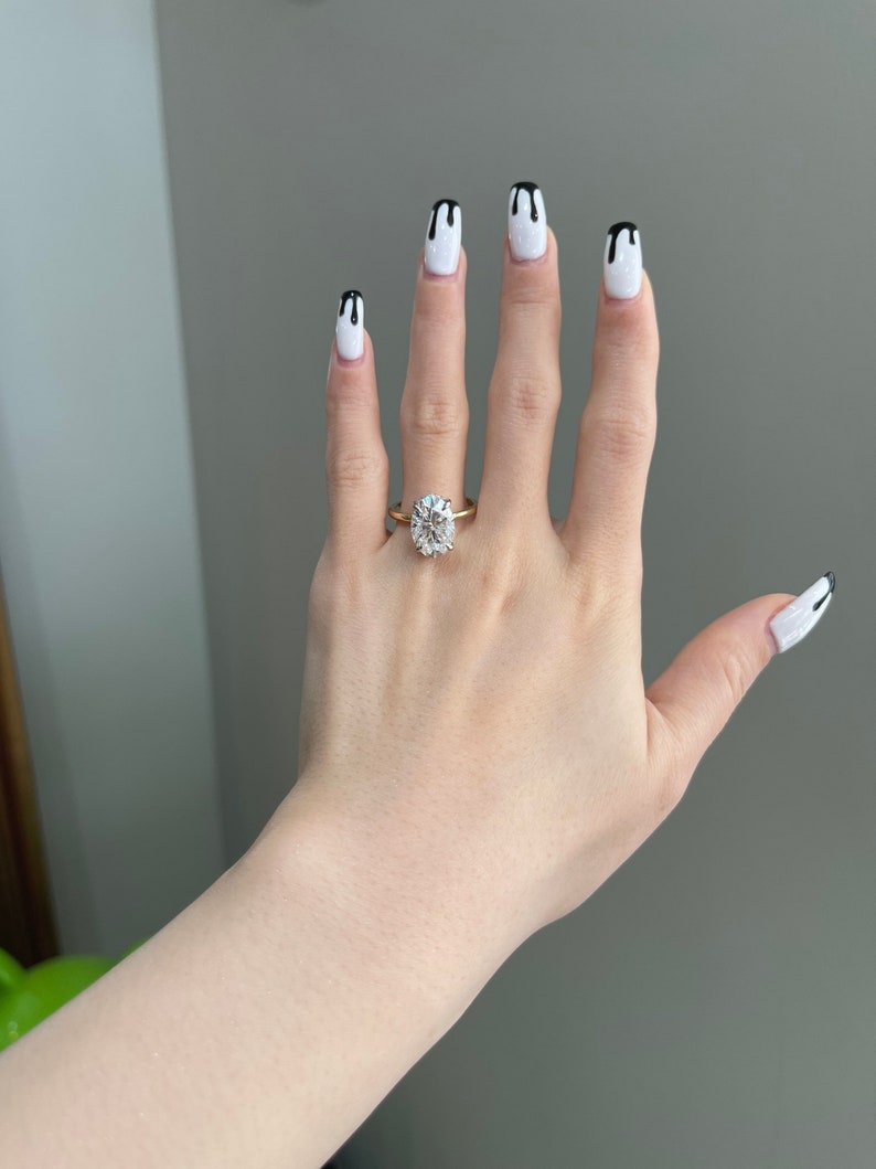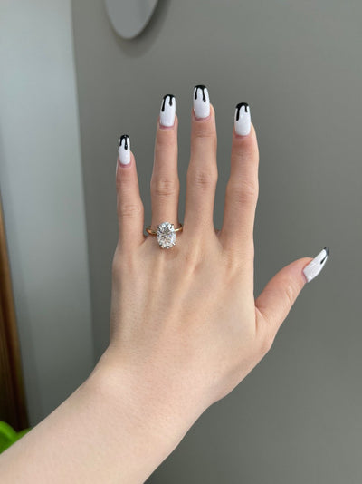 5.0CT Elongated Oval Diamond Hidden Halo Moissanite Engagement Ring
