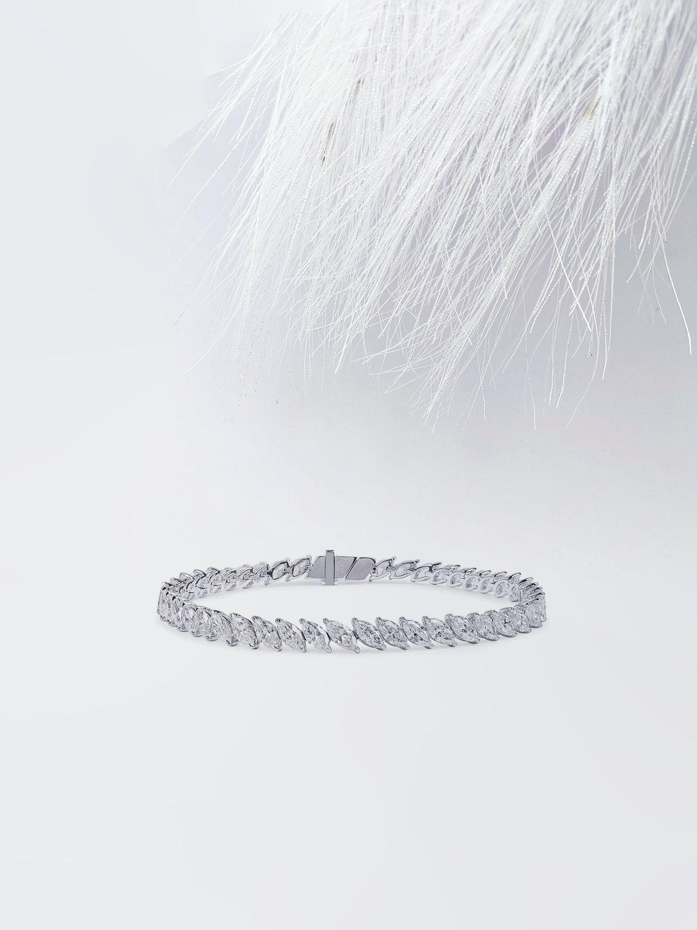✥ Illuminate her wrist with the mesmerizing brilliance of our 8.18ct Marquise Cut Tennis Moissanite Diamond Bracelet for Women. Meticulously crafted, each link showcases a stunning marquise-cut Moissanite diamond, renowned for its exceptional sparkle and fire. Set in a classic tennis bracelet design, the marquise-cut diamonds create a seamless and elegant display of sophistication. Whether worn as a statement piece for special occasions or as an everyday accessory, this bracelet exudes timeless beauty and glamour. Perfect for gifting to a loved one or as a well-deserved treat for yourself, this exquisite bracelet is sure to become a cherished addition to any jewelry collection, symbolizing enduring elegance and style.