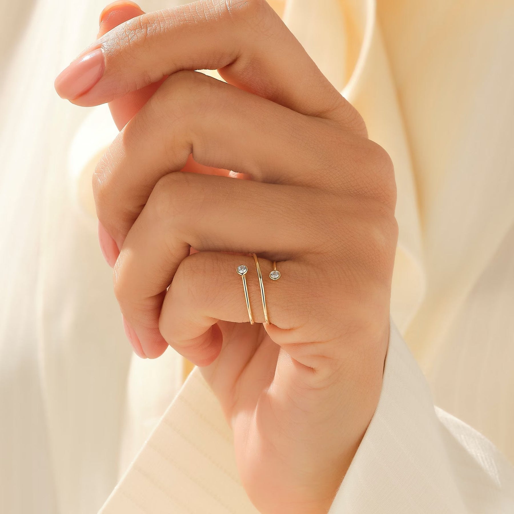 Adjustable Open Moissanite Diamond Ring in Solid Yellow Gold