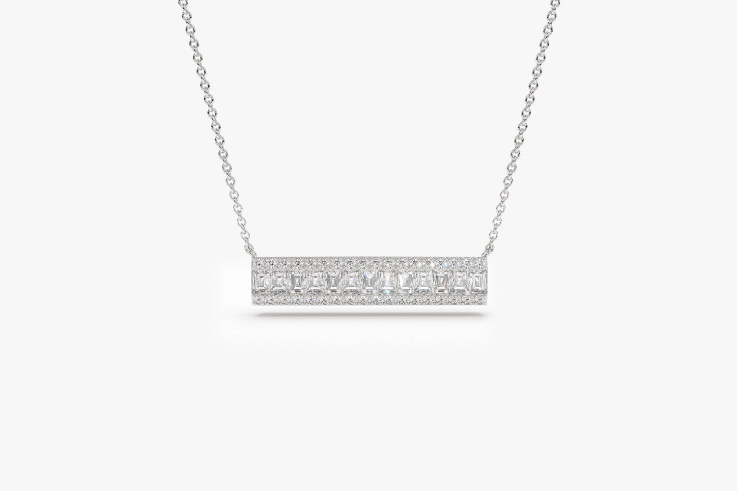 Bar Baguette Diamond Pendant Necklace for Christmas Gift