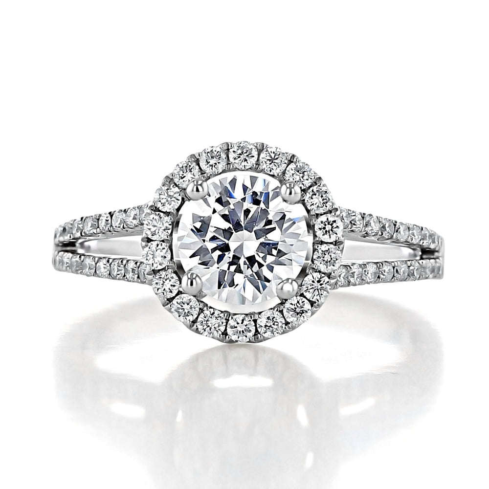 1.0 ct Round cut Halo Split Shank Moissanite Engagement Ring