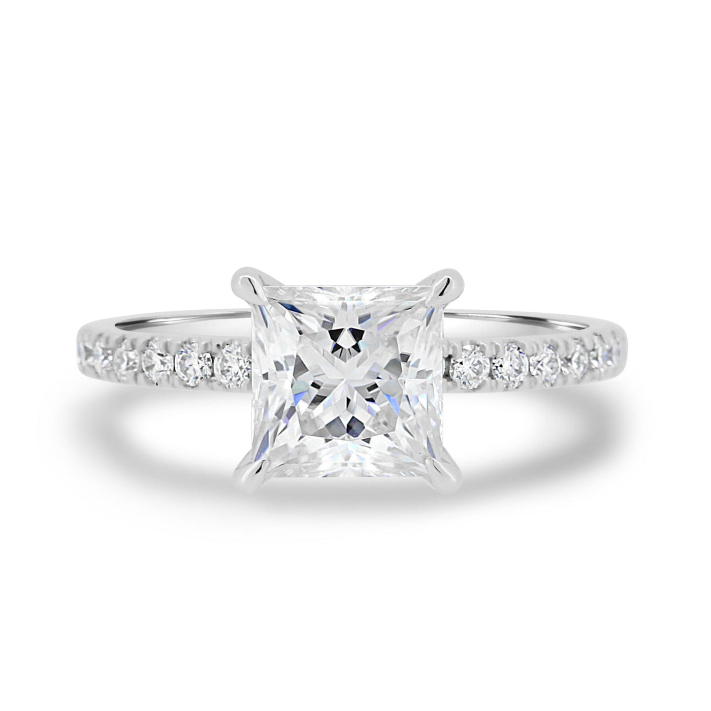 1.75 ct Princess cut Hidden Halo Moissanite Engagement Ring