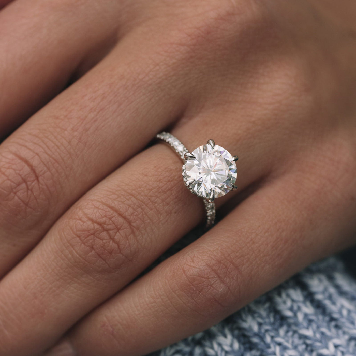 3.20 ct Round cut Hidden Halo Moissanite Engagement Ring