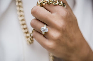 ✥ Elevate your love story with the opulent beauty of our 4 CT Oval Cut Cluster Moissanite Diamond Ring, a true masterpiece designed to captivate hearts. At its core, a magnificent 4-carat oval-cut moissanite gemstone takes center stage, exuding grace and sophistication. Surrounded by a mesmerizing cluster of shimmering moissanite diamonds, this engagement ring adds a touch of celestial sparkle, enhancing the moissanite's inherent allure with a brilliant embrace of light. Meticulously crafted, this ring seamlessly marries classic charm with modern opulence, epitomizing the timeless nature of your bond. Every facet of this extraordinary piece reflects the depth and brilliance of your commitment, promising a lifetime of radiant moments and enduring beauty. Let this remarkable ring be the symbol of your unique love story, forever shining as a testament to your unwavering bond and the luminous future that awaits you both.