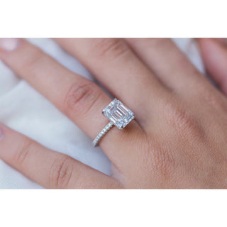 3.25 CT Emerald cut Hidden Halo Moissanite Engagement Ring