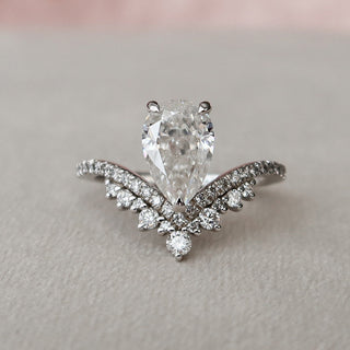 1.5 CT Pear Shaped Moissanite Chevron Engagement Ring