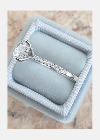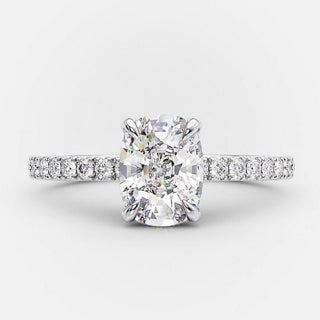 1.70ct Elongated Cushion Cut Moissanite Hidden Halo Engagement Ring