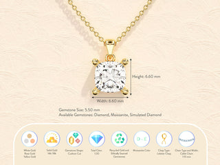 Cushion Cut Moissanite Diamond Pendant Necklaces