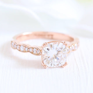 Cushion Cut Moissanite Ring With Halo Diamond Band