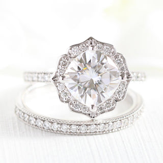 Cushion cut moissanite with bridal band set 14k in rose gold