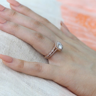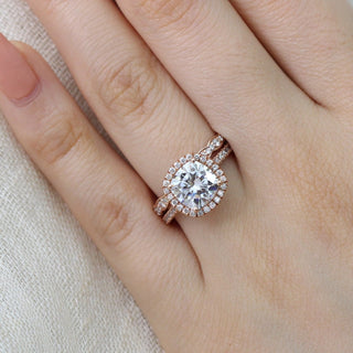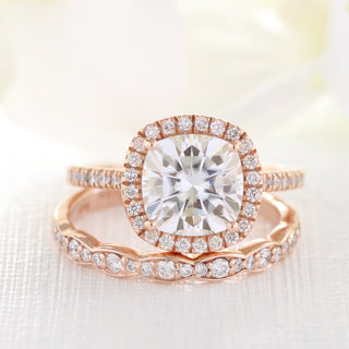 Cushion Halo Pave Moissanite Ring With Scalloped Diamond Band