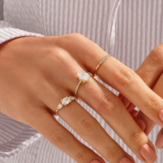 ✥ Capture the essence of modern romance with our East-West Oval Cut Three Stone Moissanite Engagement Ring for Women. This captivating piece features a unique twist on the classic three-stone design, with oval-cut moissanite gemstones set horizontally for a contemporary look. The sleek east-west orientation of the stones creates a striking silhouette on the finger, symbolizing the journey of love from past to present to future. Crafted with meticulous attention to detail and adorned with shimmering accents, this ring exudes elegance and sophistication, making it the perfect choice to celebrate your timeless love story. Let this exquisite ring be a symbol of your commitment and devotion, promising a lifetime of love and happiness together.