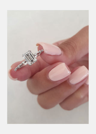 1.0ct Emerald Cut Moissanite Petite Pave Diamond Engagement Ring