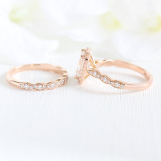 ✥ Elevate your love story with the timeless elegance of our Emerald Cut Moissanite with Bridal Band Set in 14k Rose Gold. The centerpiece, a mesmerizing emerald-cut moissanite, captures attention with its exceptional clarity and brilliance. Set in a warm and romantic 14k rose gold band, the engagement ring is complemented by a matching wedding band that gracefully enhances the overall aesthetic.