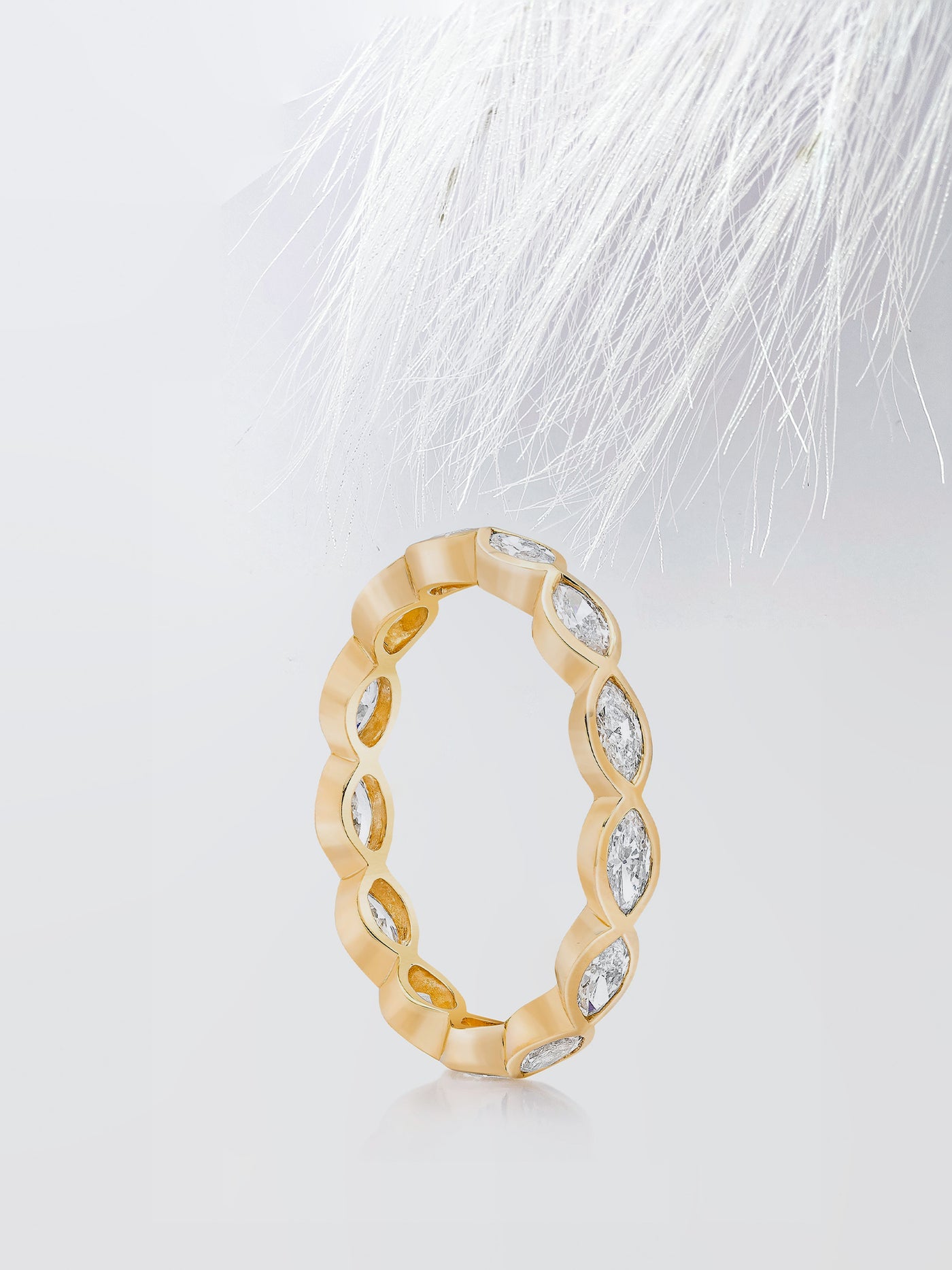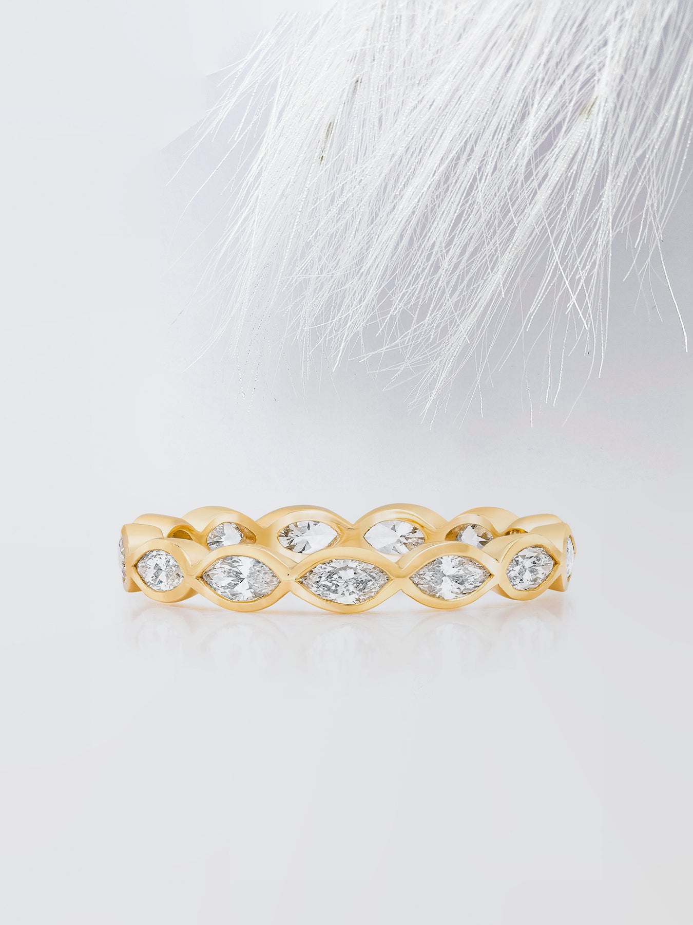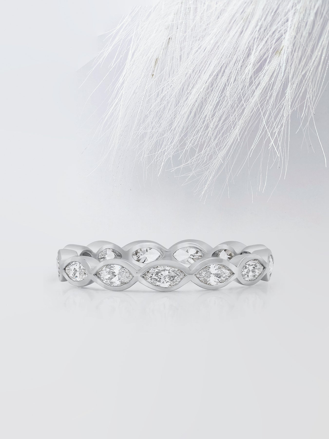 Marquise Cut Bezel Diamond Wedding Band For Women