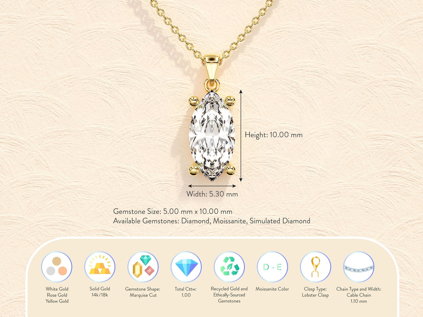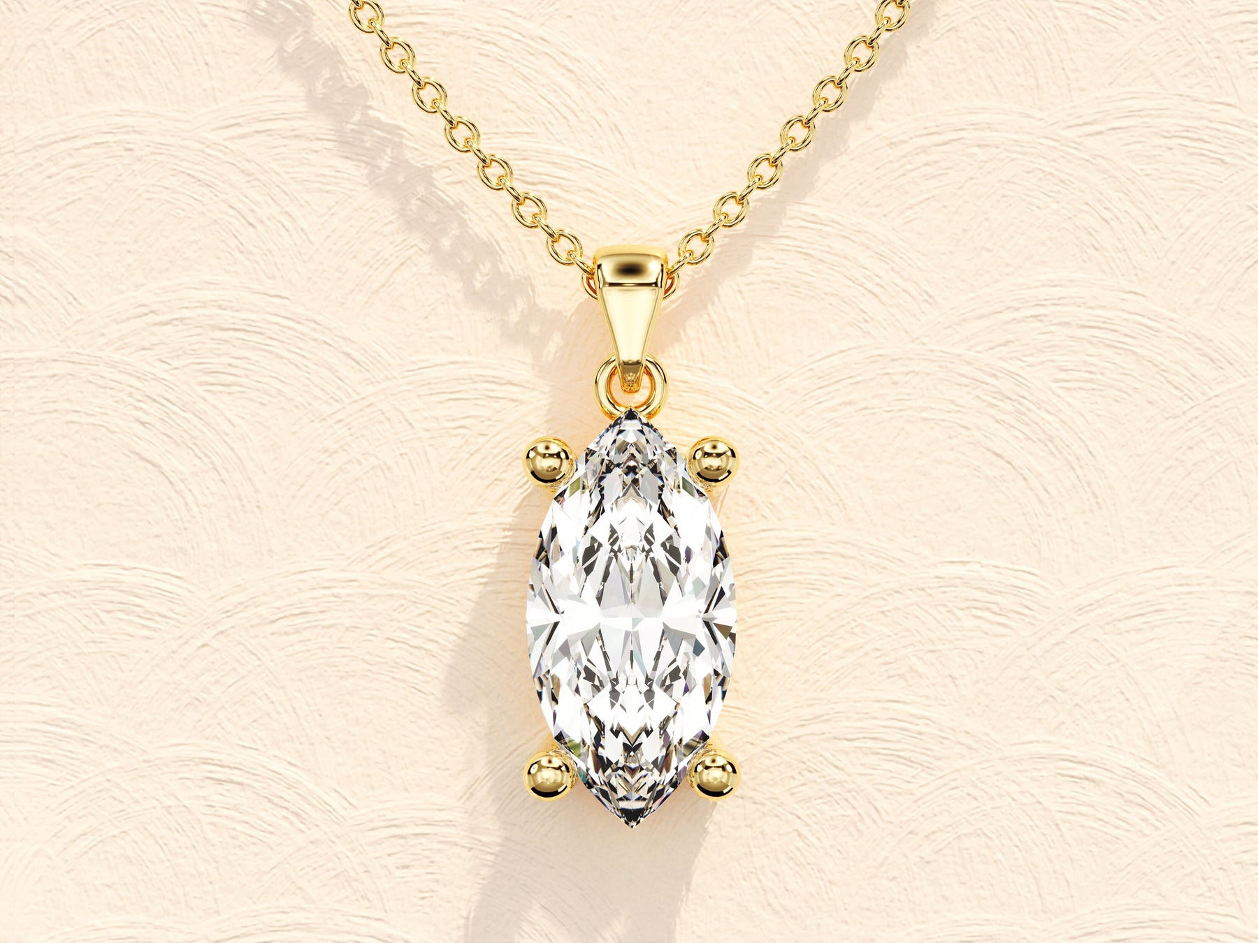 Marquise Cut Solitaire Moissanite Diamond Pendant Necklace