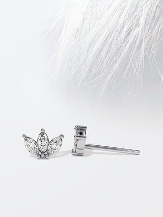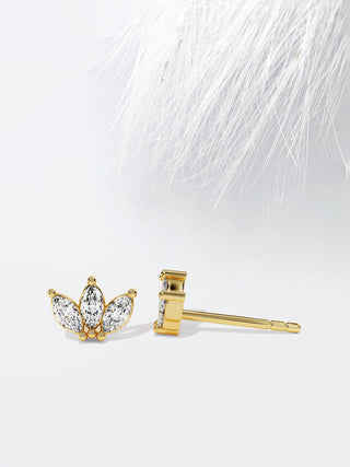 Marquise Cut Three Stone Moissanite Stud Diamond Earrings For Women