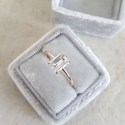 1.0ct Emerald Cut Moissanite Solitaire Diamond Engagement Ring