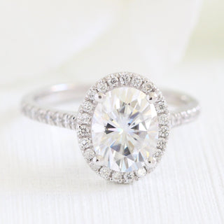 2.0ct Oval Cut Moissanite Halo Engagement Ring With Unique Wedding Band