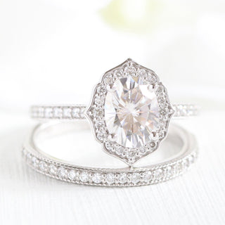1.50ct Oval Cut Moissanite Halo Bridal Ring Set