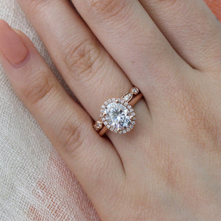 2.0ct Oval Moissanite Halo Engagement Ring with Bezel Diamond Band