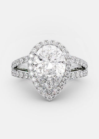 2.0ct Pear Cut Moissanite Diamond Split Shank Engagement Ring