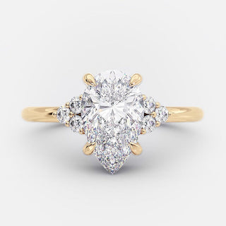 Pear Cut Cluster Moissanite Diamond Engagement Ring in 14K Yellow Gold