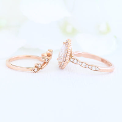 Pear Cut Moissanite Ring With curved leaf Diamond Band