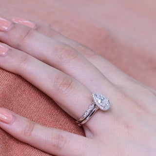 Pear Cut Moissanite Ring With Scalloped Diamond Band