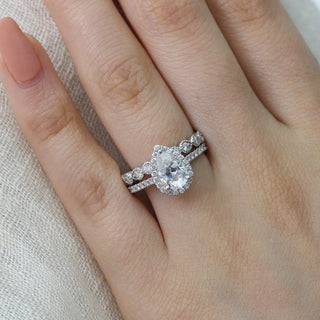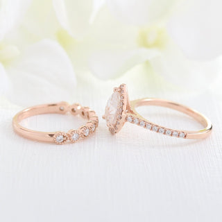 ✥ Elevate your love story with the enchanting beauty of our Pear Halo Pave Moissanite Ring with Milgrain Band, a captivating bridal ring set that embodies the essence of your enduring commitment. The engagement ring features a dazzling pear-cut moissanite gemstone at its center, encircled by a delicate halo of shimmering moissanite diamonds, adding an extra layer of brilliance and sophistication. The milgrain band, adorned with intricate detailing, adds a touch of vintage charm and elegance to this set. Paired perfectly with the matching wedding band, this set forms a harmonious union that symbolizes the unbreakable bond of marriage. Meticulously crafted, these rings seamlessly blend classic charm with modern opulence, epitomizing the enduring nature of your love. Every facet of this extraordinary set reflects the depth and brilliance of your commitment, promising a lifetime of radiant moments and everlasting beauty. Let this remarkable bridal ring set be the symbol of your unique love story, forever shining as a testament to your unwavering bond and the luminous future that awaits you both.