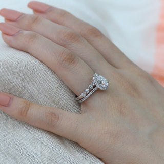 Pear Halo Pave Moissanite Ring With Milgrain Band Ring