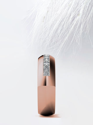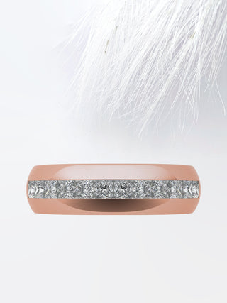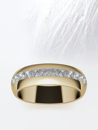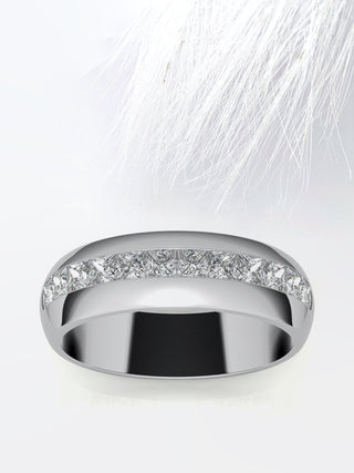 Introducing our Princess Cut Channel Moissanite Men's Diamond Wedding Band, a radiant symbol of eternal love and commitment designed for her. Crafted with meticulous attention to detail, this exquisite wedding band features dazzling princess-cut Moissanite stones elegantly set within a classic channel setting. Renowned for their exceptional brilliance and durability, the Moissanite stones radiate with captivating sparkle, adding a touch of glamour to any ensemble. Whether worn as a symbol of devotion or as a fashionable statement piece, this wedding band exudes timeless charm and elegance, making it the perfect choice for commemorating the bond between two hearts. Elevate your special day with this extraordinary piece that captures the essence of romance and enduring beauty.