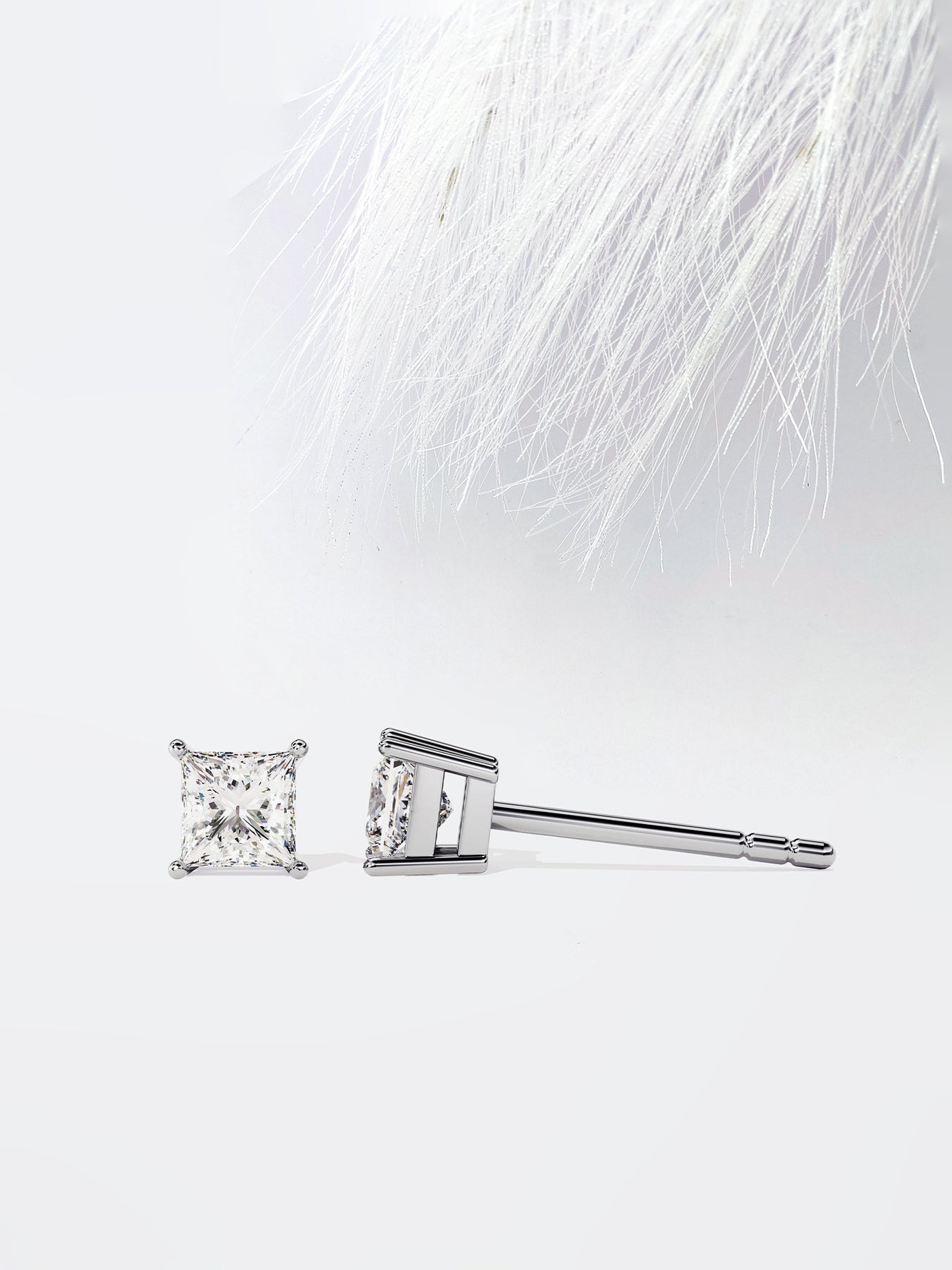 Princess Cut Solitaire Moissanite Stud Diamond Earrings For Women